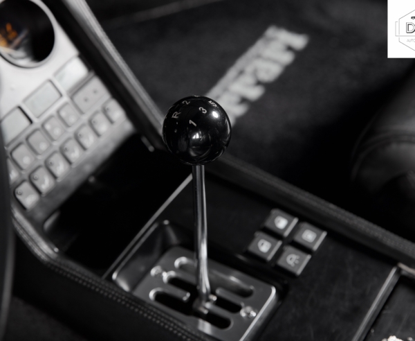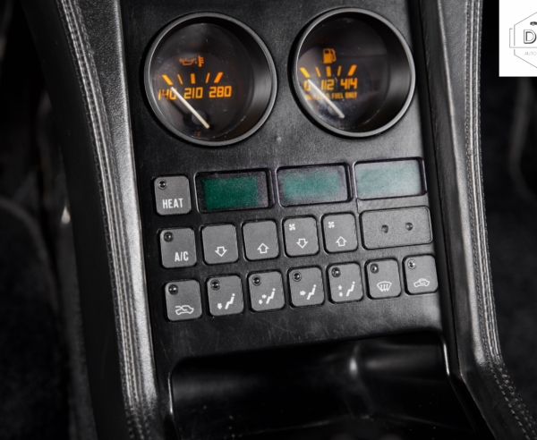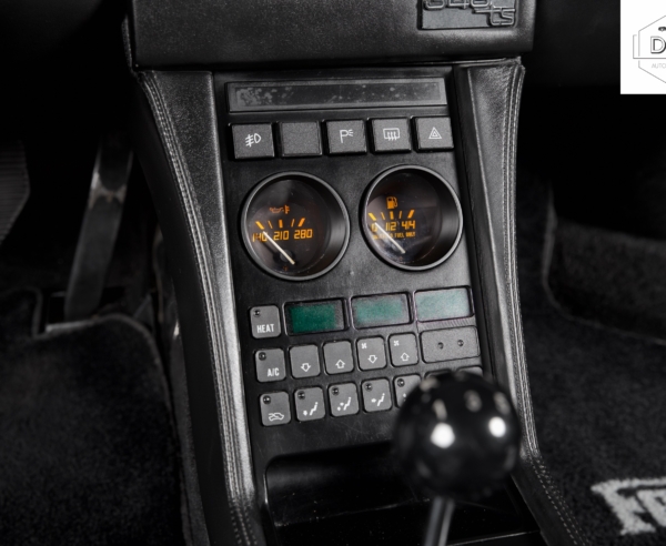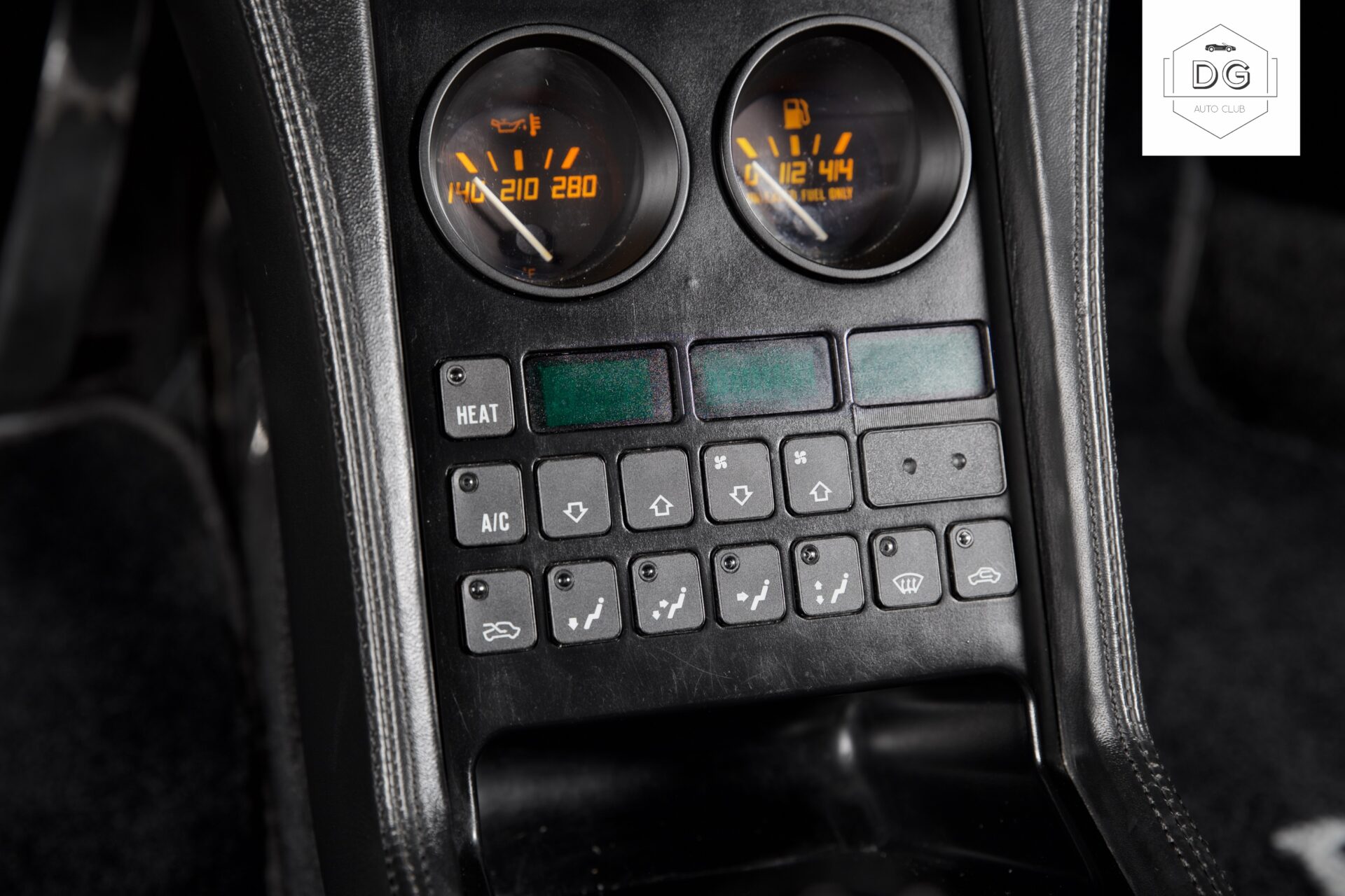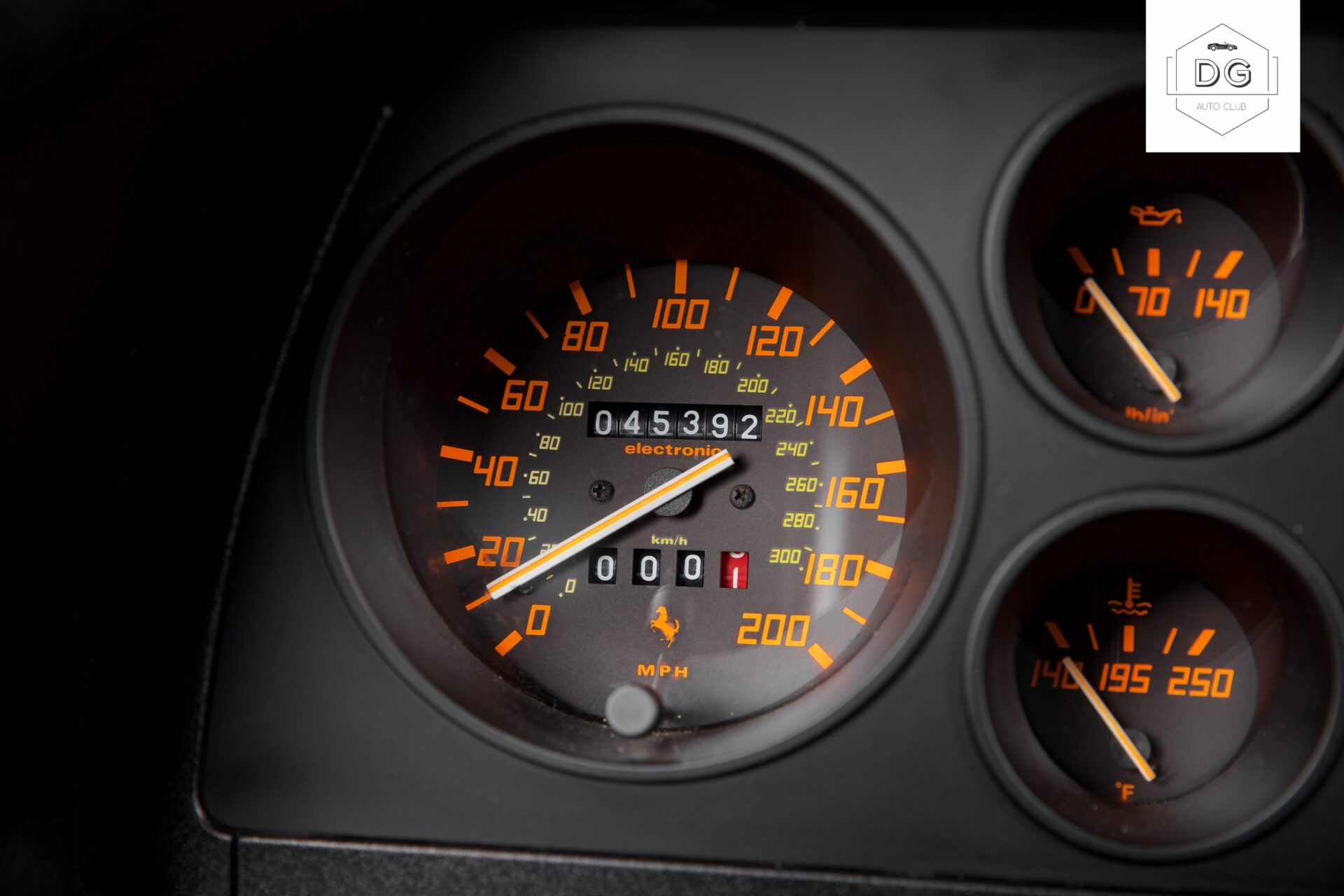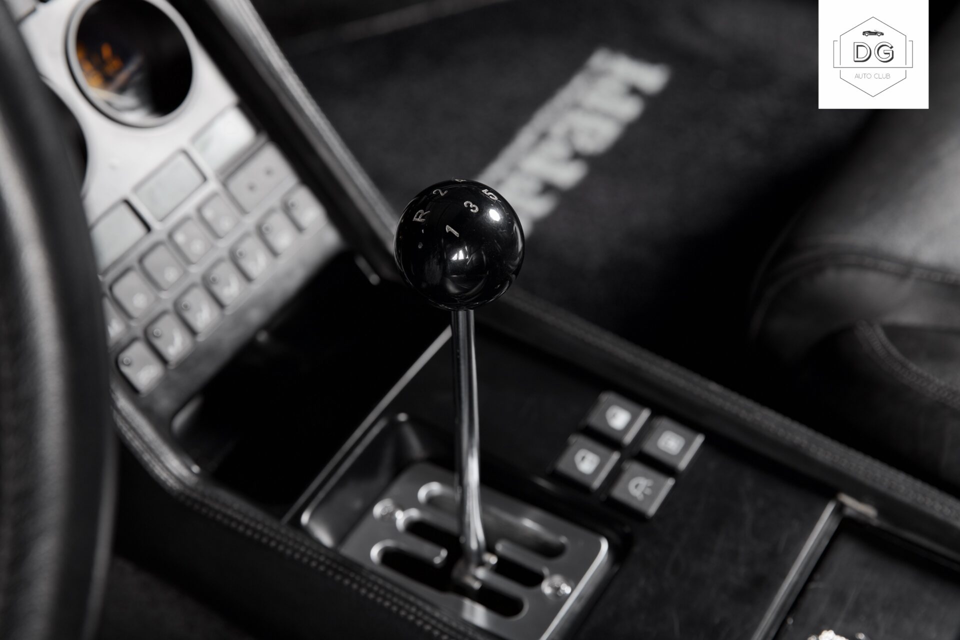 The Ferrari 348tb is powered by a 3.4L V8 engine producing 296 hp. Power is transferred through a dog-leg 5-speed manual transmission featuring a classic Italian gated (open) shifter.
