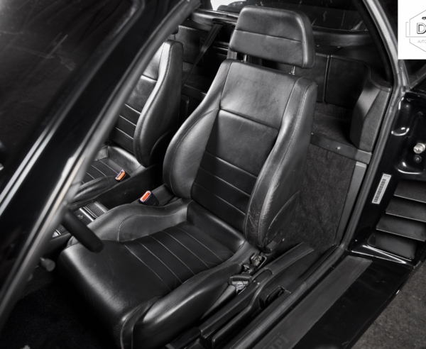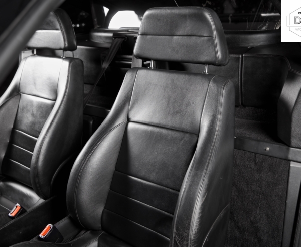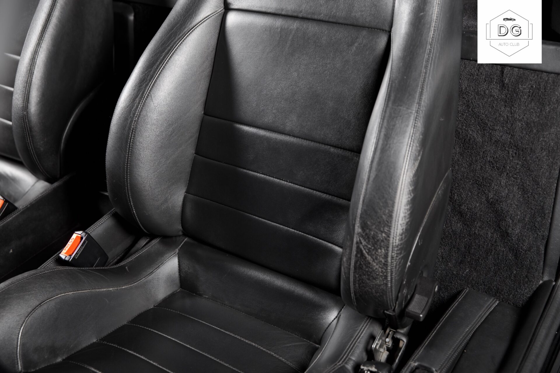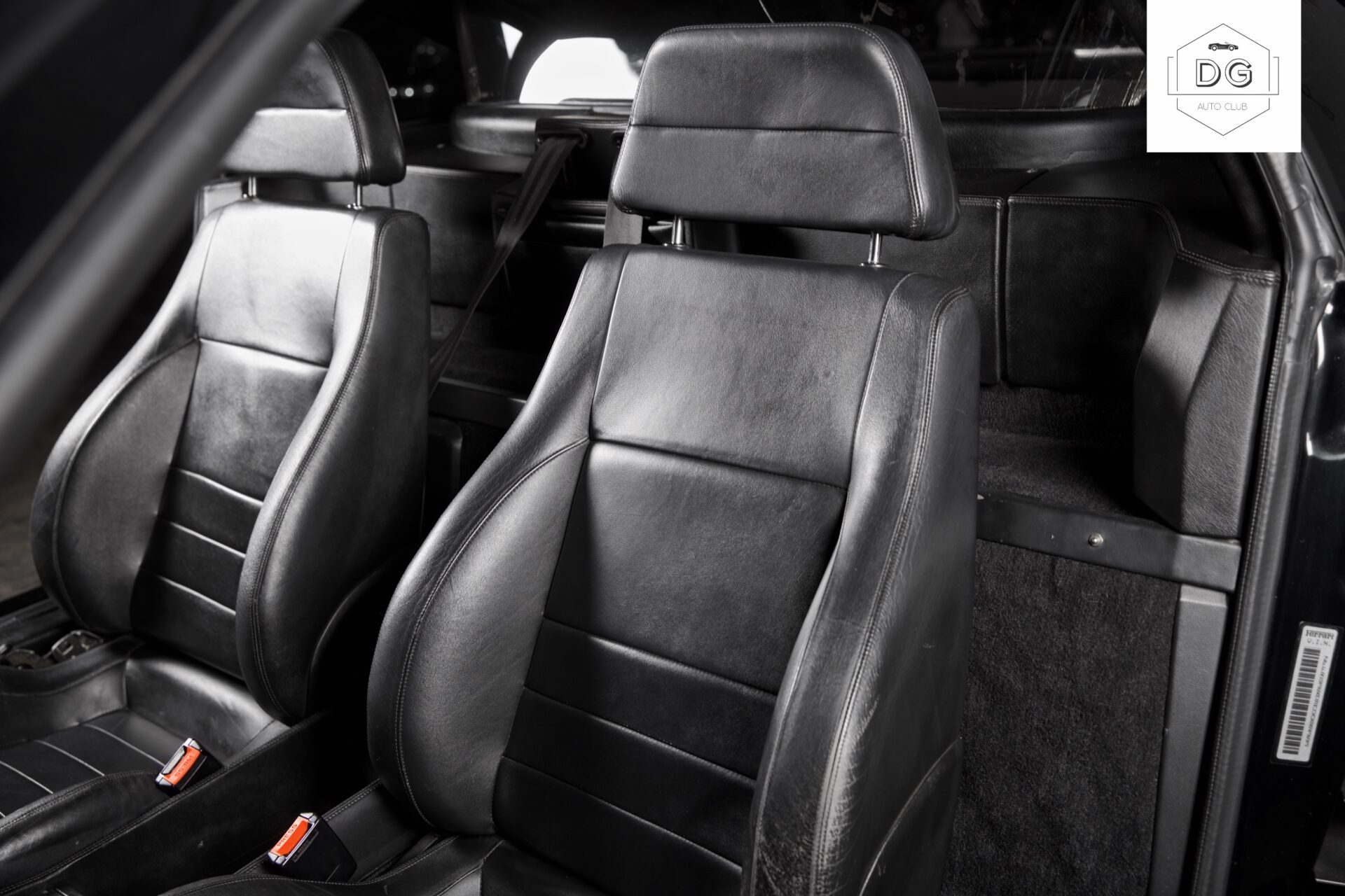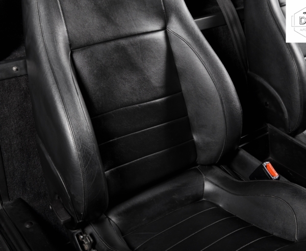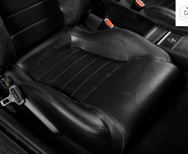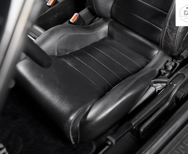 The car features a beautiful black leather interior. The driver’s seat shows normal wear for the mileage. The interior is in great shape overall.