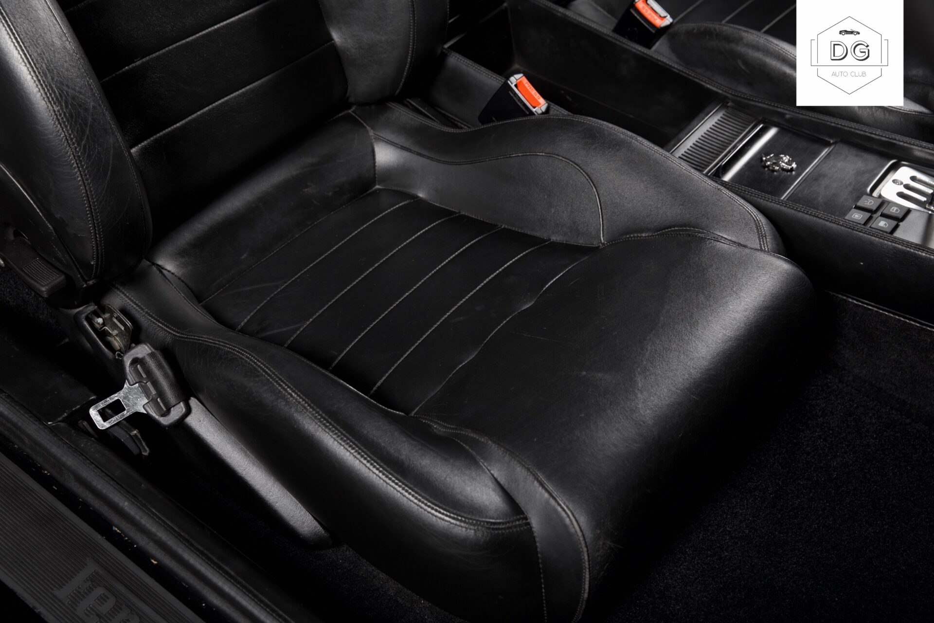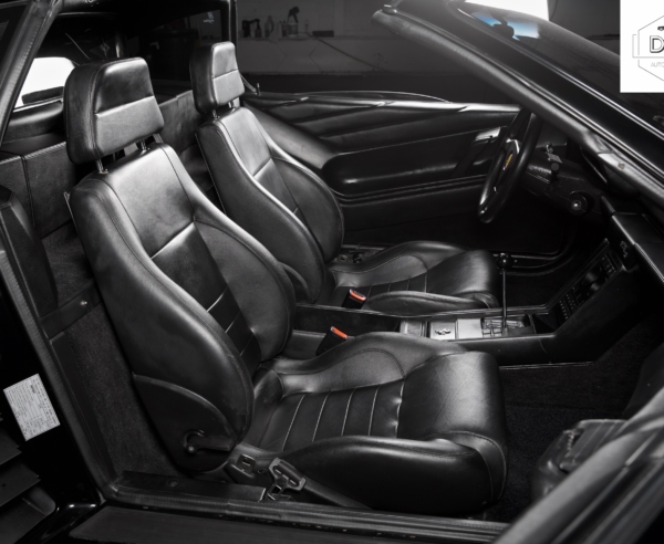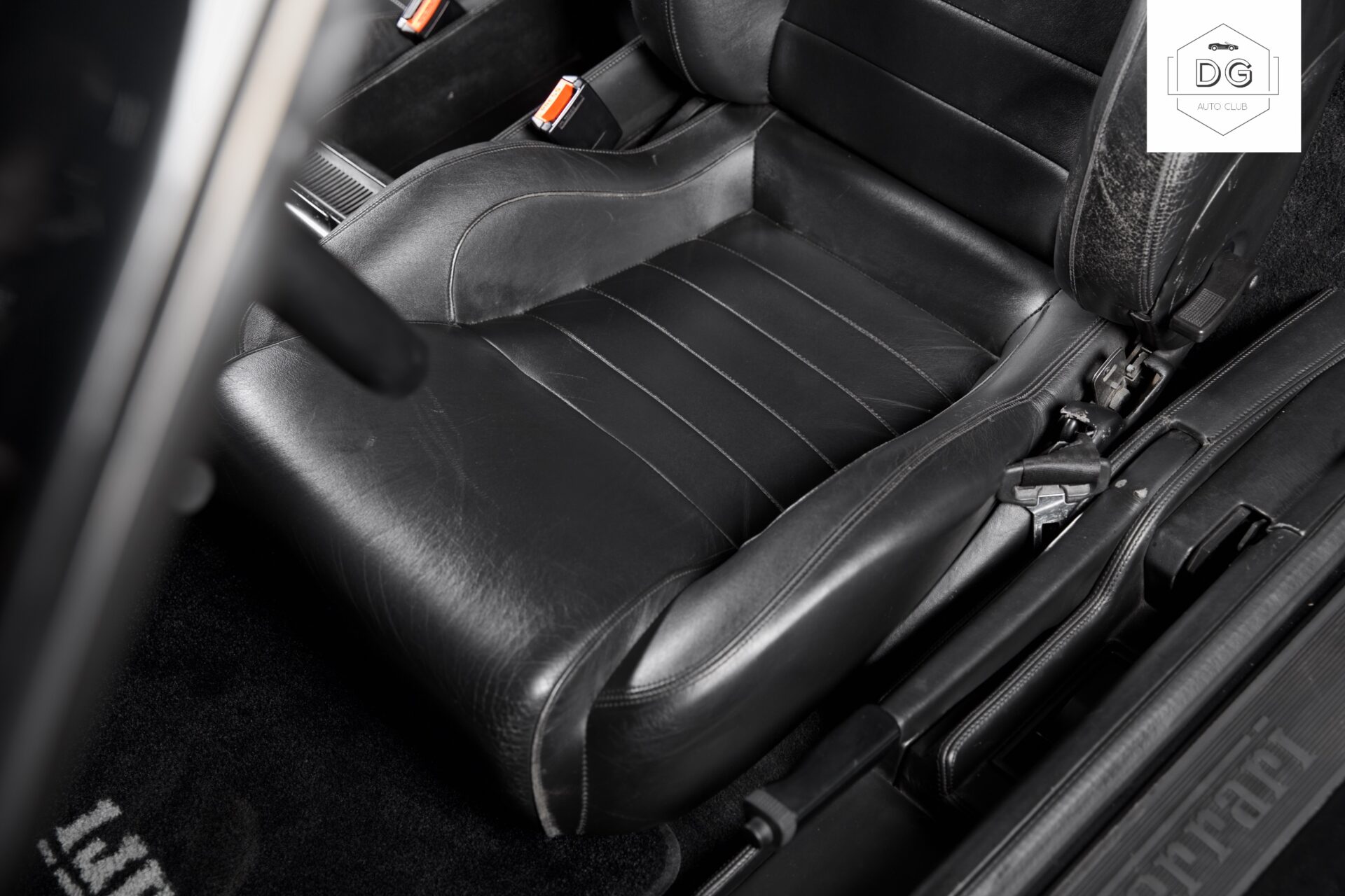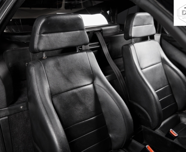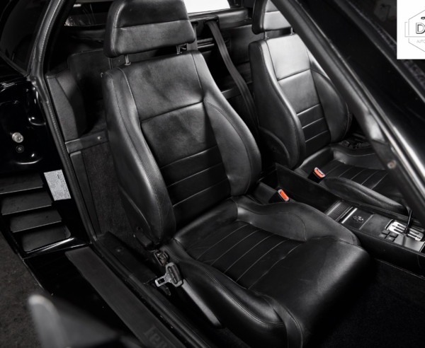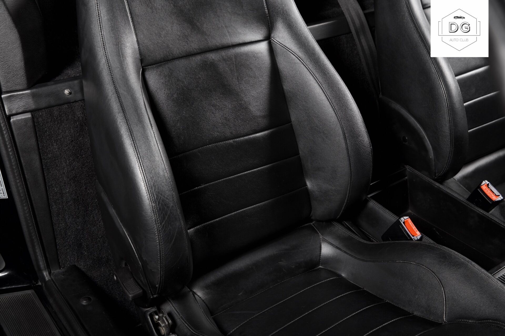 The car features a beautiful black leather interior. The driver’s seat shows normal wear for the mileage. The interior is in great shape overall.