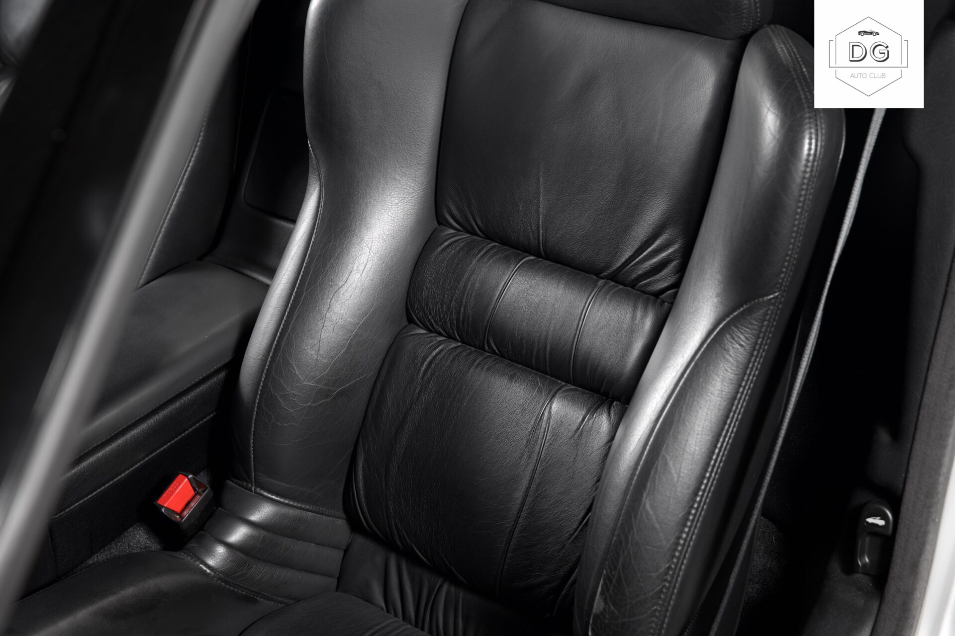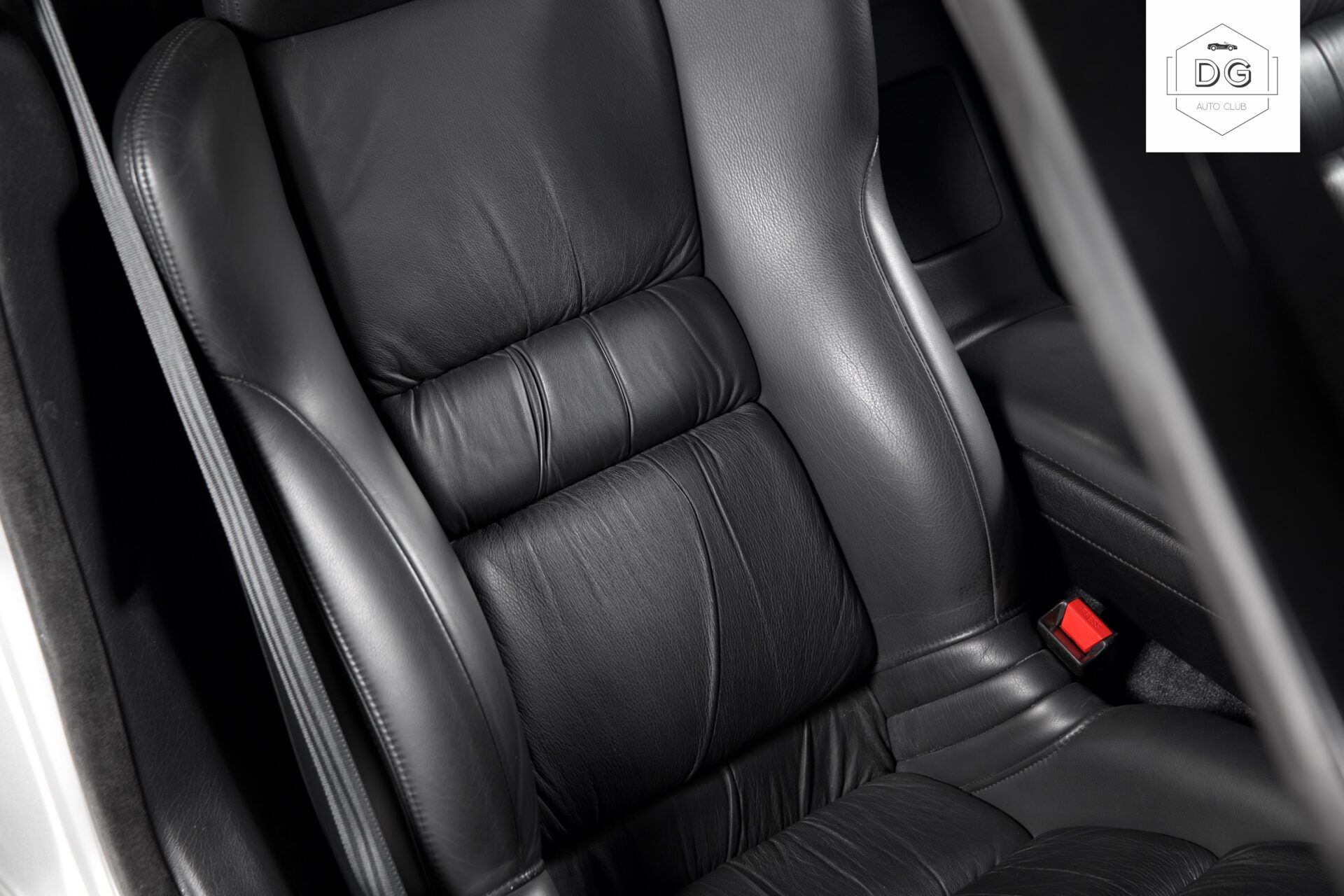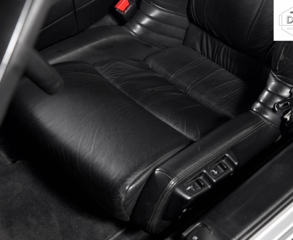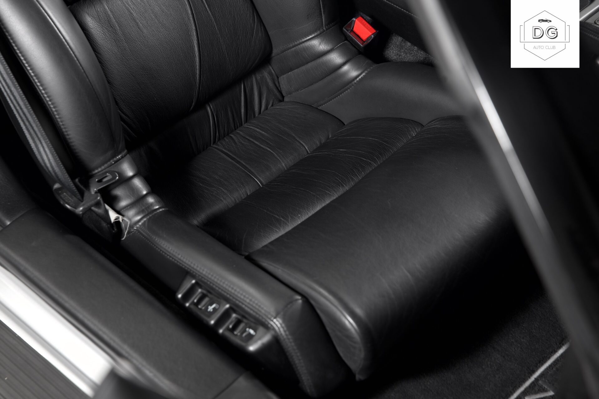 The interior features wonderful black leather upholstery. The seats are in excellent condition with only regular wear on the driver’s seat.
