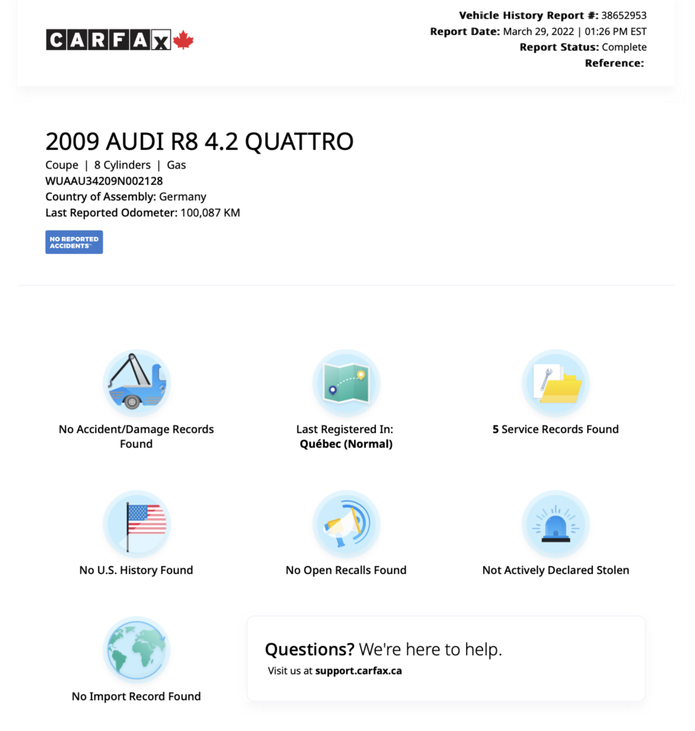 The Audi R8 4.2 is powered by Audis iconic 4.2L V8 engine producing an 420 hp and 317 lb-ft of torque. It features a 6-speed manual transmission and Audis legendary Quattro all-wheel drive system. As a result, the car accelerates from 0-100 km/h in only 4.4 seconds and can hit a (electronically limited) top speed of over 300 km/h!